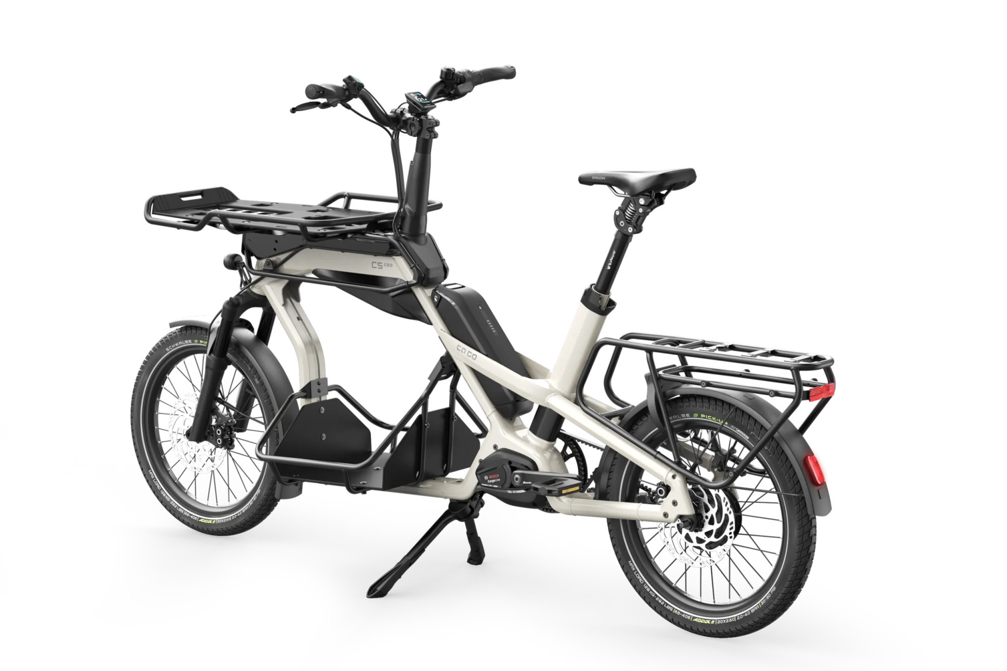 La maniabilité est très agréable même si le CS200 est bien chargé, le moteur Bosch CX cargo très agréable et puissant et ses changements de vitesses Enviolo dans le moyeu vous permet de changer de rapport en roulant ou à l'arrêt !